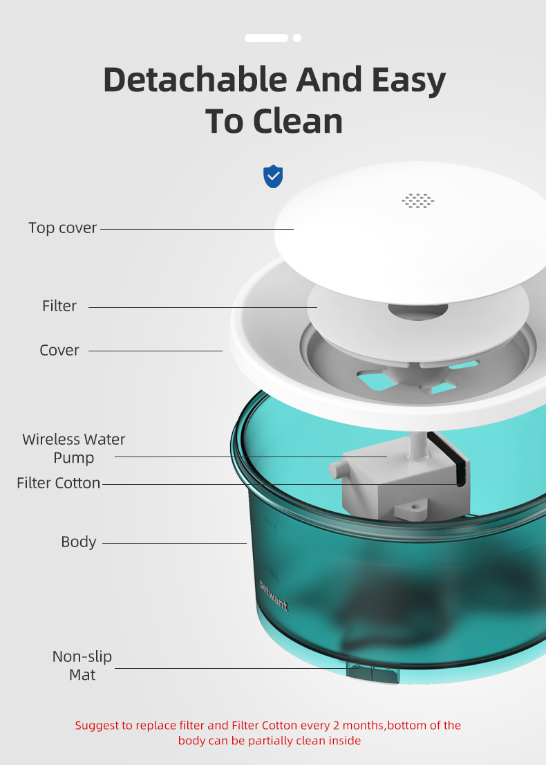 Diseño ultra seguro: La electricidad se separa del agua al cablear la bomba por debajo de la fuente, no hay cables adentro del recipiente.