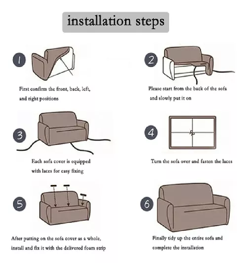 1- Coloque la funda sobre el sofá con la etiqueta en la parte de atrás del sofá.