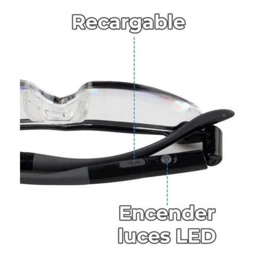 Las Gafas Lupa Vision De Aumento Con Luz, utilizan una nueva tecnología para proporcionar un aumento del 160% sin fatiga ocular y sus luces LED ultrabrillantes integradas, ayudan a ver los detalles con mayor precisión, incluso en la iluminación más oscura.