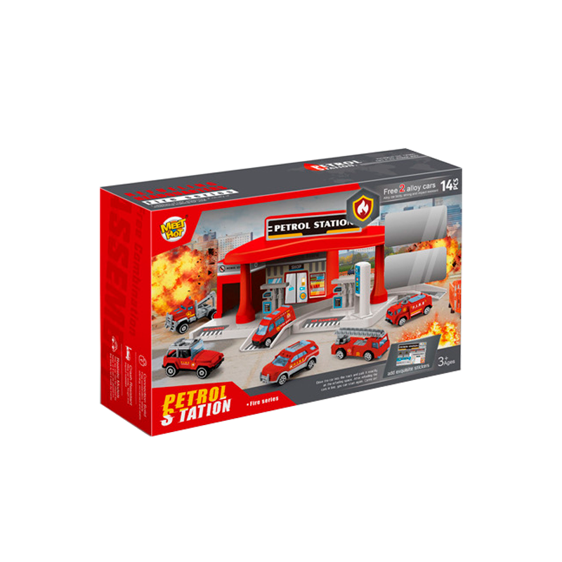 Coche de simulación de aleación de metal para niños, modelo transfronterizo, estación de servicio de ciudad, estacionamiento, lucha contra incendios, juguete de estacionamiento de construcción para niños, pista de estacionamiento para autos.