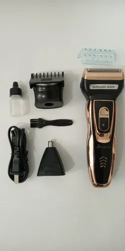 Maquina de afeitar 3-1 totalmente eléctrica esta equipado con un accesorio para la barba y bigote mas un cabezal para el bello de la nariz