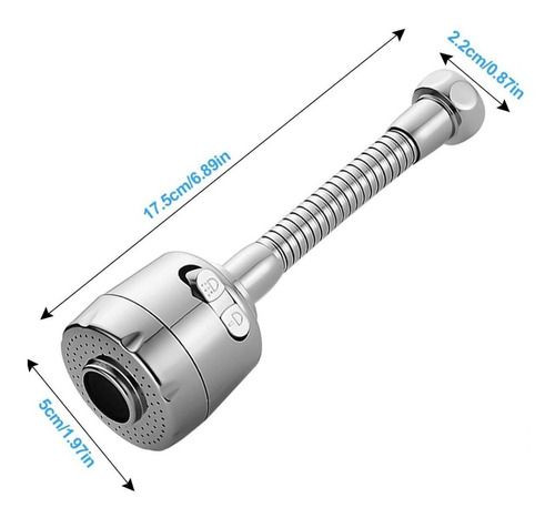El grifo del filtro de salpicaduras puede girar la salida de agua 360 grados. Diseño de flujo de agua: Interruptor giratorio: Flujo de burbujas suaves (1.8 GPM) y Ducha con rociador fuerte (1.8 GPM). El nuevo diseño de un ángulo de rotación muy grande hace que el agua pueda llegar a todos los rincones del fregadero de la cocina. Facilita el lavado y la limpieza