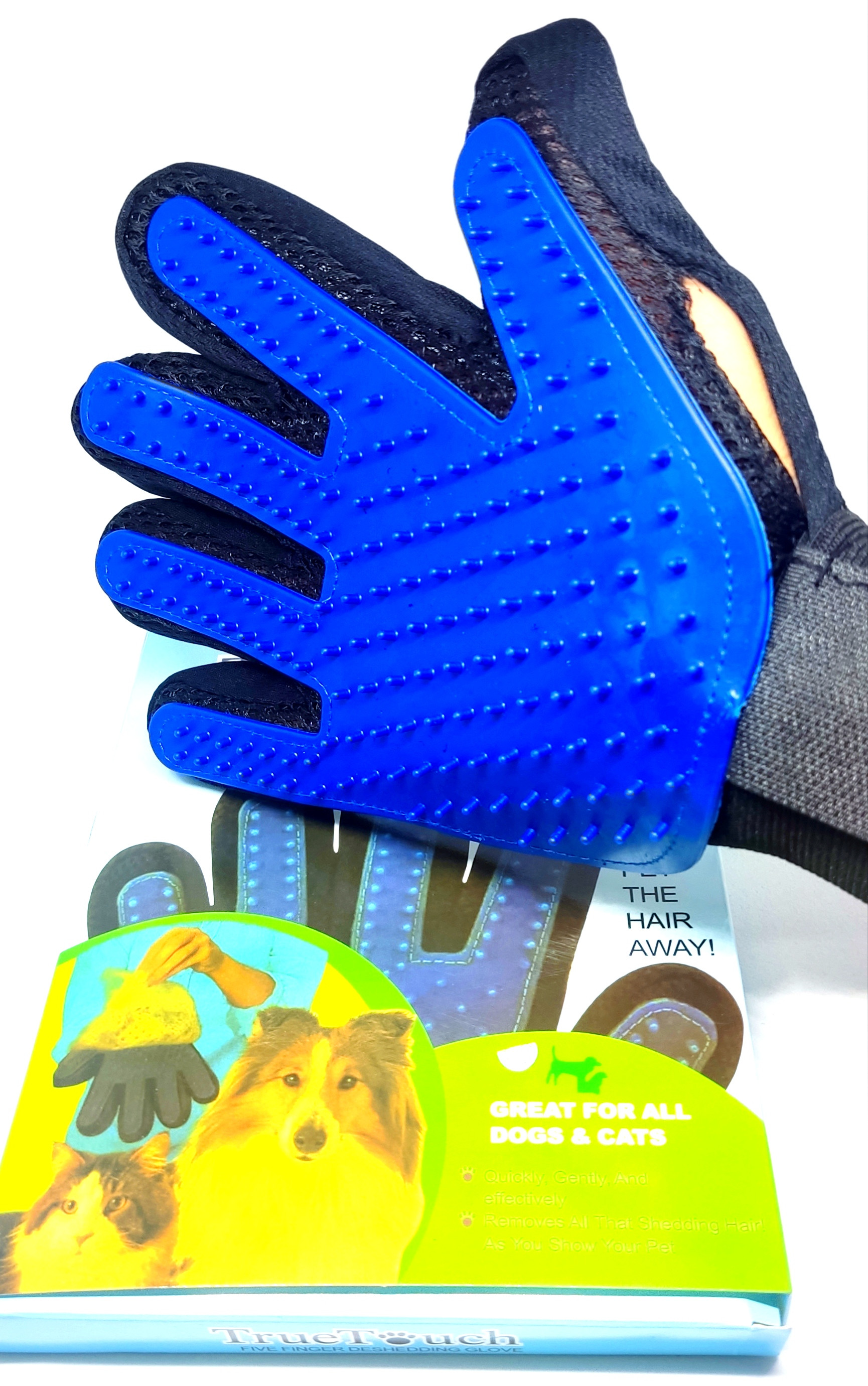 El Guante Quita Pelo Cepillo para Peinar Perros y Gatos de la marca True Touch es el aliado perfecto para el cuidado de tu mascota. Este guante de color azul, fabricado con cerdas de silicona, no solo ayuda a mantener el pelaje de tu mascota limpio y libre de pelo suelto, sino que también proporciona un agradable masaje que tu perro o gato disfrutará. Su formato de guante permite un fácil manejo y adaptabilidad a cualquier tamaño de mano, facilitando el cepillado y haciendo de esta tarea un momento agradable para ti y tu mascota. Ideal para perros y gatos de todas las razas y tamaños. Con el Guante Quita Pelo Cepillo para Peinar Perros y Gatos de True Touch, el cuidado de tu mascota será una experiencia única.