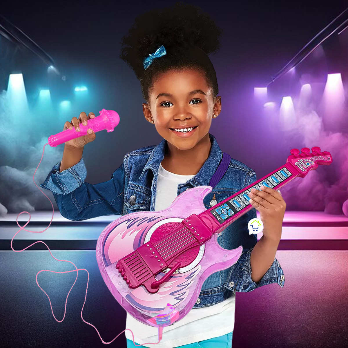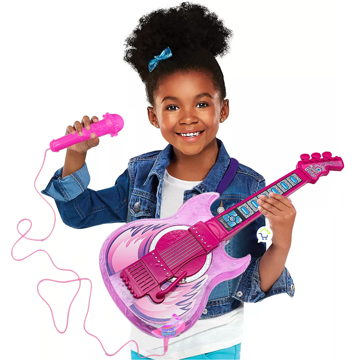 ¡Sacude la guitarra y siente el verdadero placer de la música con nuestra guitarra musical! Esta guitarra cuenta con luces, sonidos y un micrófono para cantar karaoke. ¡No hay nada mejor para tus pequeños compartir en sus fiestas domésticas que tener una guitarra divertida para ti y sus amigos!