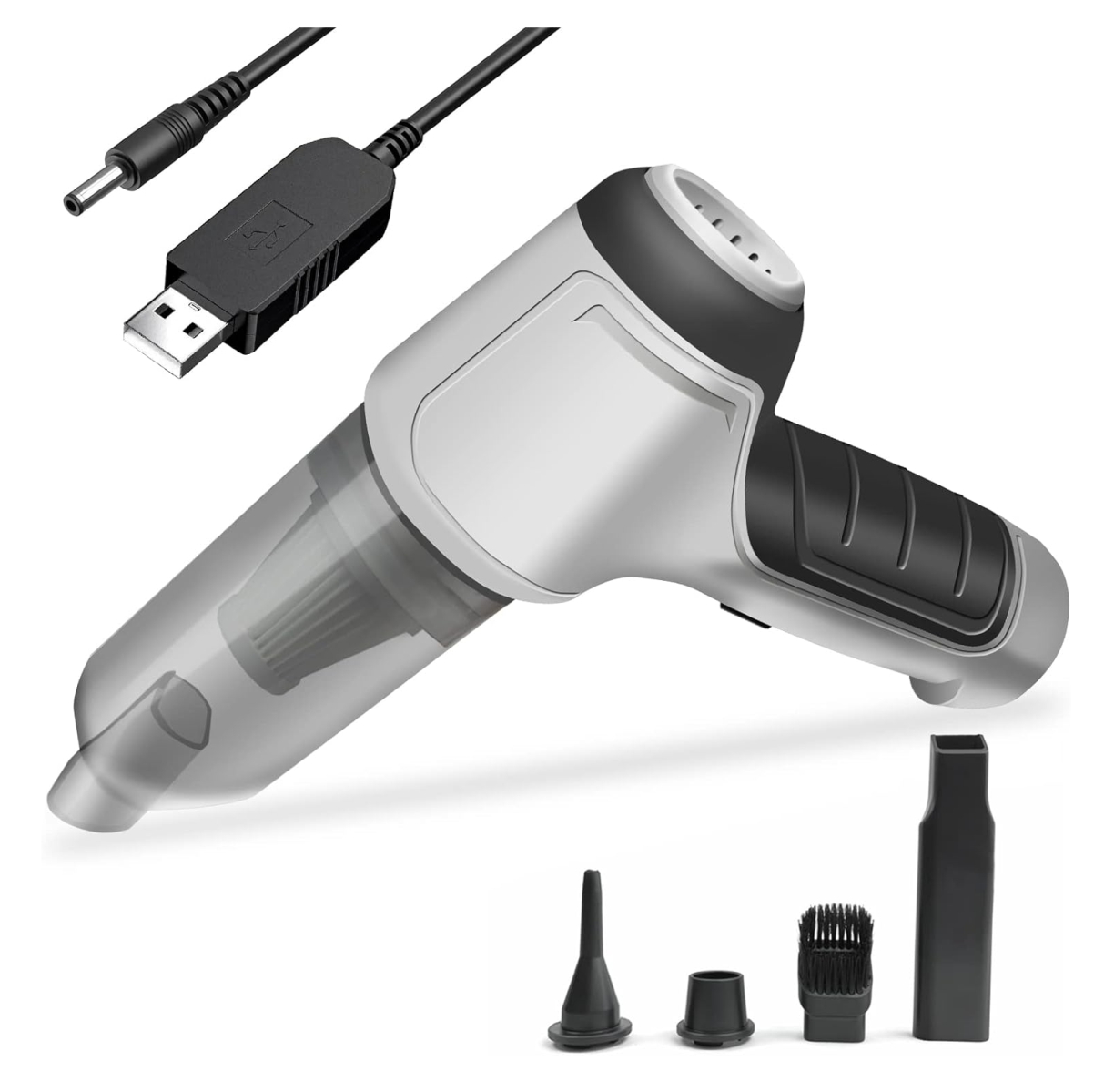 La aspiradora de automóvil se puede utilizar como un soplador de limpieza de computadora, limpiador de laptop, aspiradora de escritorio, aspiradora de mano para automóvil, piano, casa de mascotas, limpieza de escritorio de oficina, etc. Eso puede satisfacer el soplado, aspirar y bombear una variedad de escenarios para su uso.