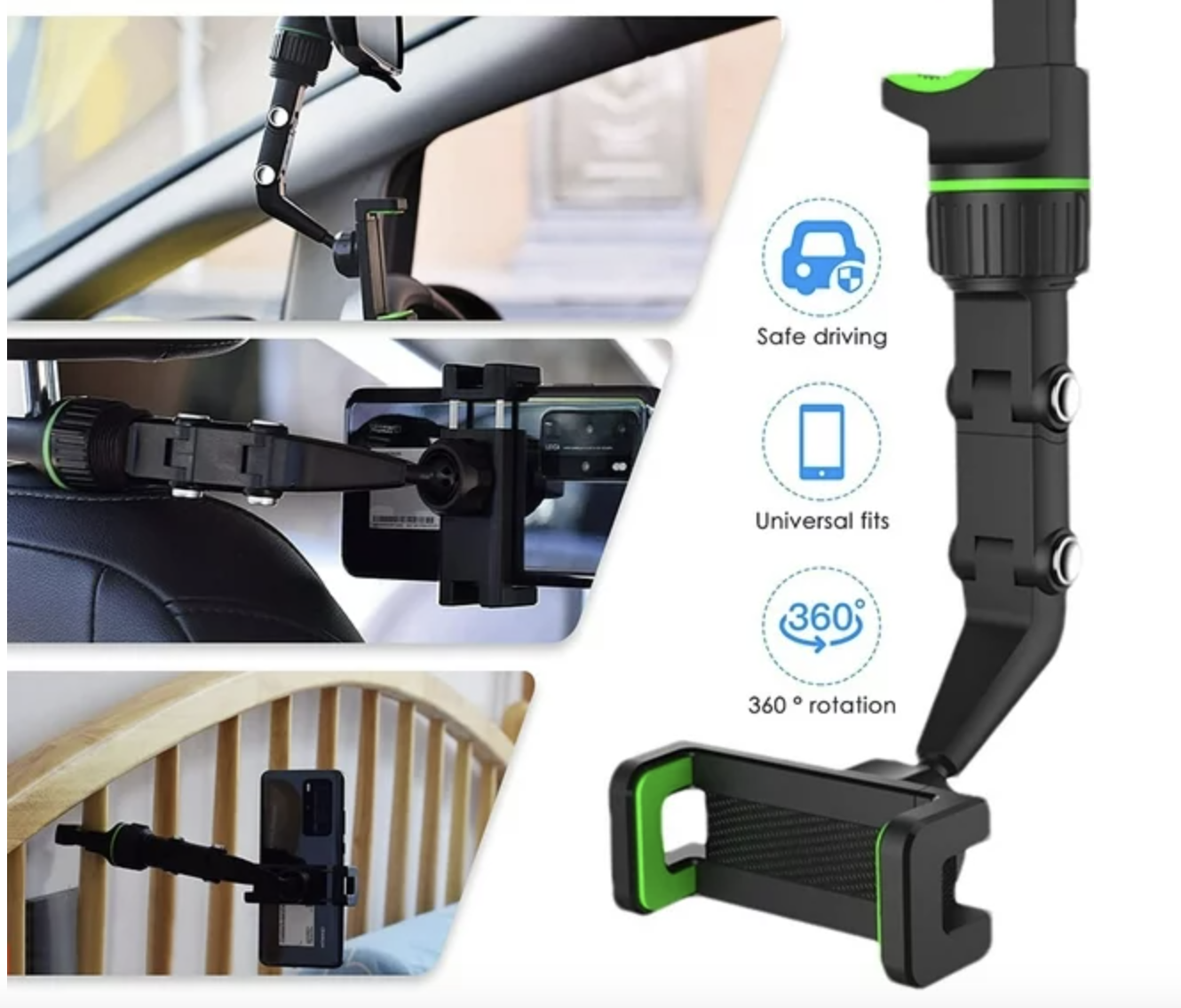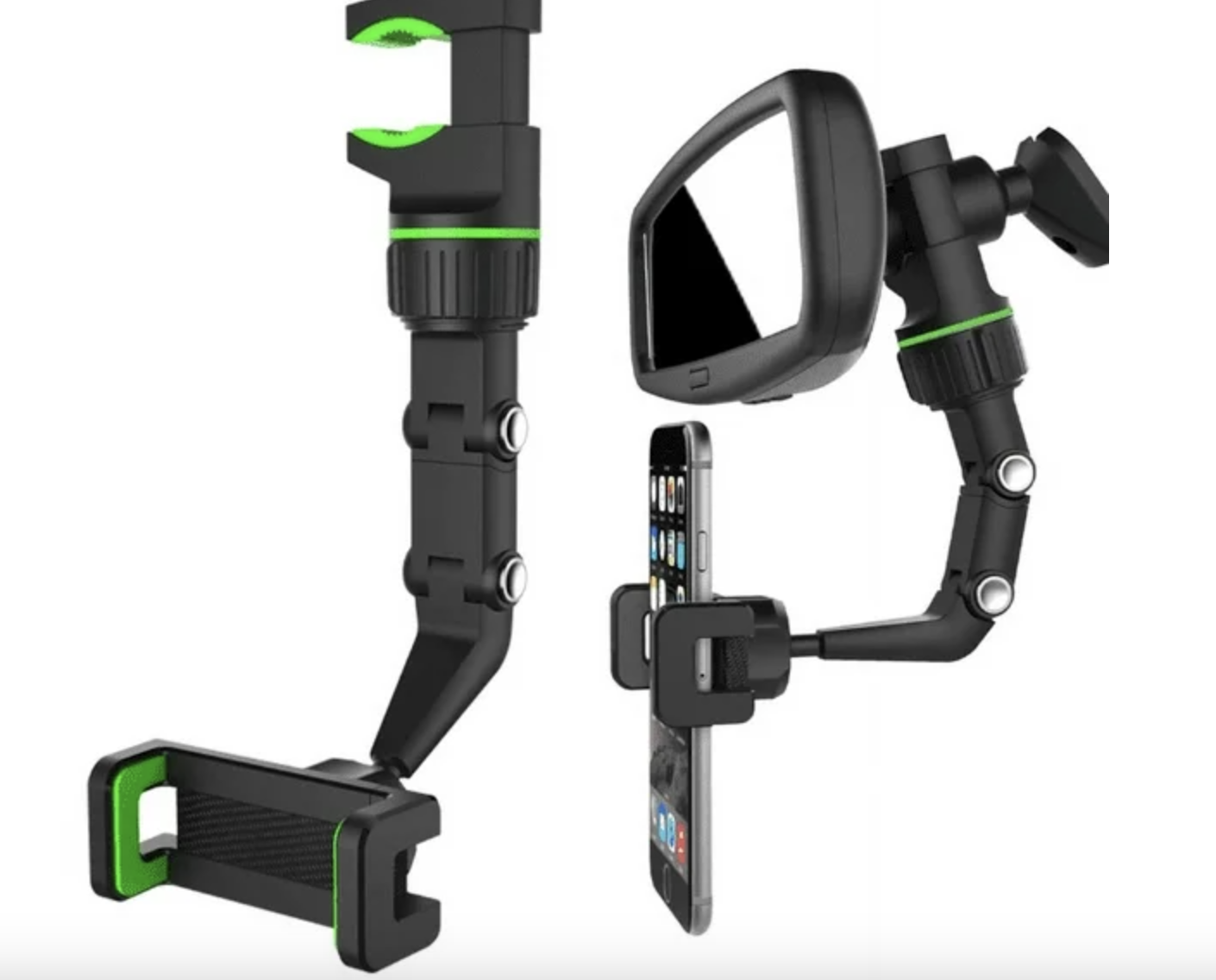 • Soporte para teléfono con espejo retrovisor para automóvil.