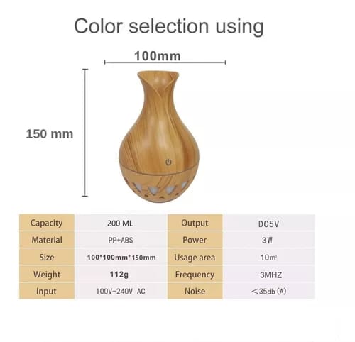 Este humidificador ultrasónico incorpora un difusor de aromaterapia y luces LED de colores para crear un ambiente agradable y relajante en su hogar u oficina. Gracias a su tecnología ultrasónica, produce una fina neblina de agua que mejora la humedad del aire.