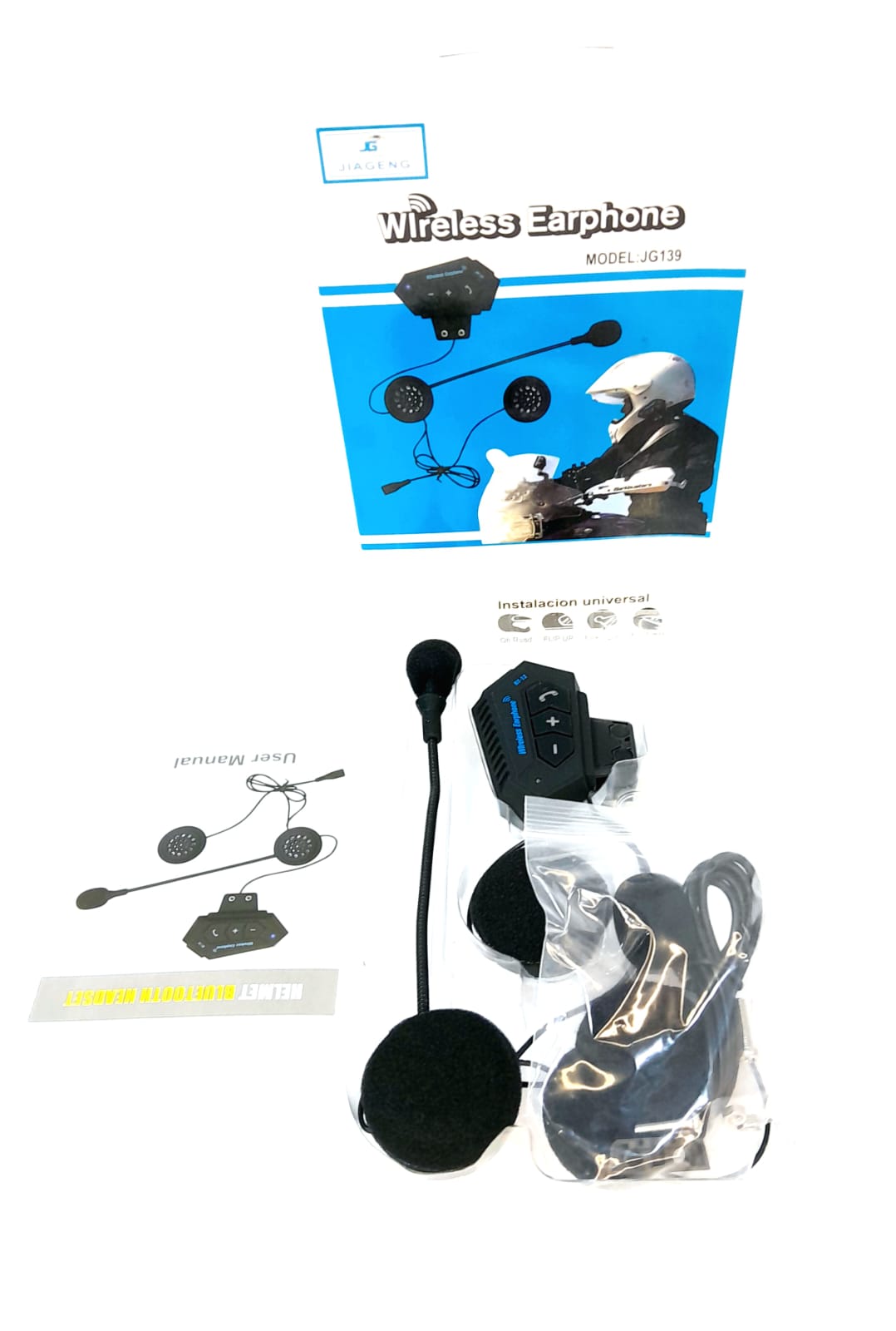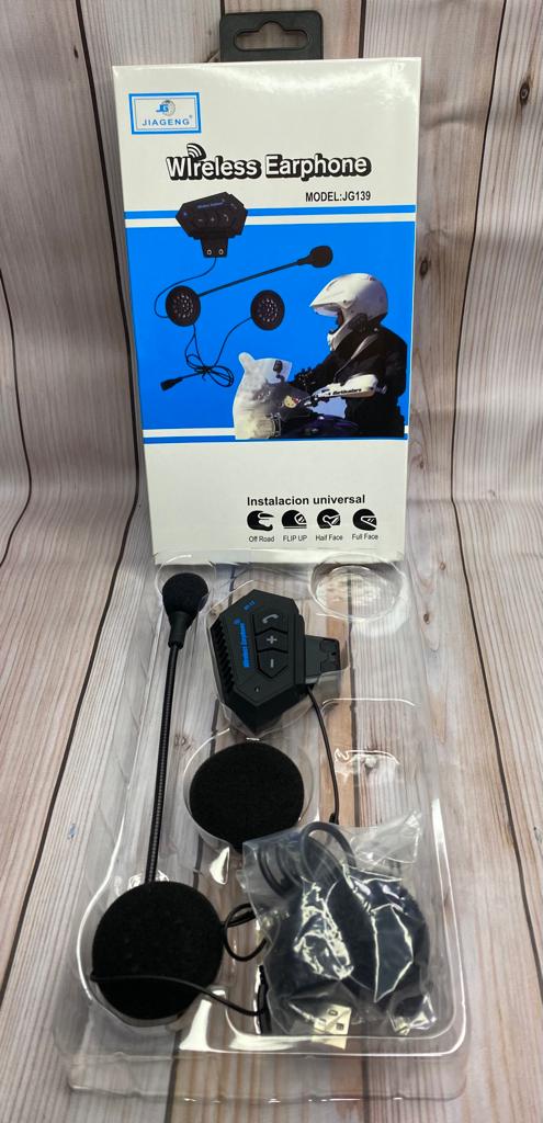 Funciones: @*Auriculares y manos libres bluetooh, capaz de escuchar todas las aplicaciones del celular @al que lo vinculas @*Ajuste de volumen, ajuste rápido con el botón de + – para el volumen @*Ajuste de canción, ajuste rápido de pista musical o de YouTube con el botón + – @*Contestador automático @*Remarcar al último contacto llamado presionando 5 veces sobre el botón de @llamada @*Google asistan @*Contesta y realiza llamada @*Pausa y después de canción @@Este auricular Bluetooth está diseñado de acuerdo a la estructura interna del casco de motocicleta . @@Batería: 3.7V / 500mA batería recargable @Tiempo de carga: 2-3 horas @Tiempo de trabajo continuo: aproximadamente 18 horas – 36 horas @Tamaño: 50 x 35 x 12mm @@El paquete incluye: @1 * Casco Auricular Bluetooth @1 * Diadema + Micrófono @1 * Cable USB