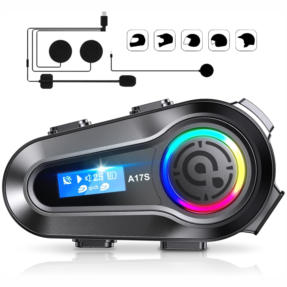 Auriculares Bluetooth multifuncionales para motocicleta: Los auriculares de intercomunicación para casco adoptan la tecnología Bluetooth 5.3, que garantiza que los auriculares exteriores tengan una alta compatibilidad y estabilidad. Te permiten hacer llamadas manos libres, disfrutar de la música, escuchar guía de voz GPS, intercomunicador conveniente y acceso al asistente digital activado por voz, etc.