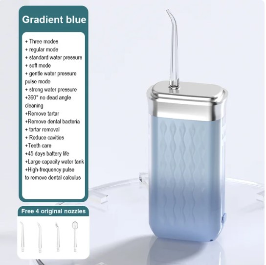 • Es un dispositivo portátil que ofrece una alternativa cómoda y eficaz al hilo dental tradicional para mantener una salud bucal óptima.