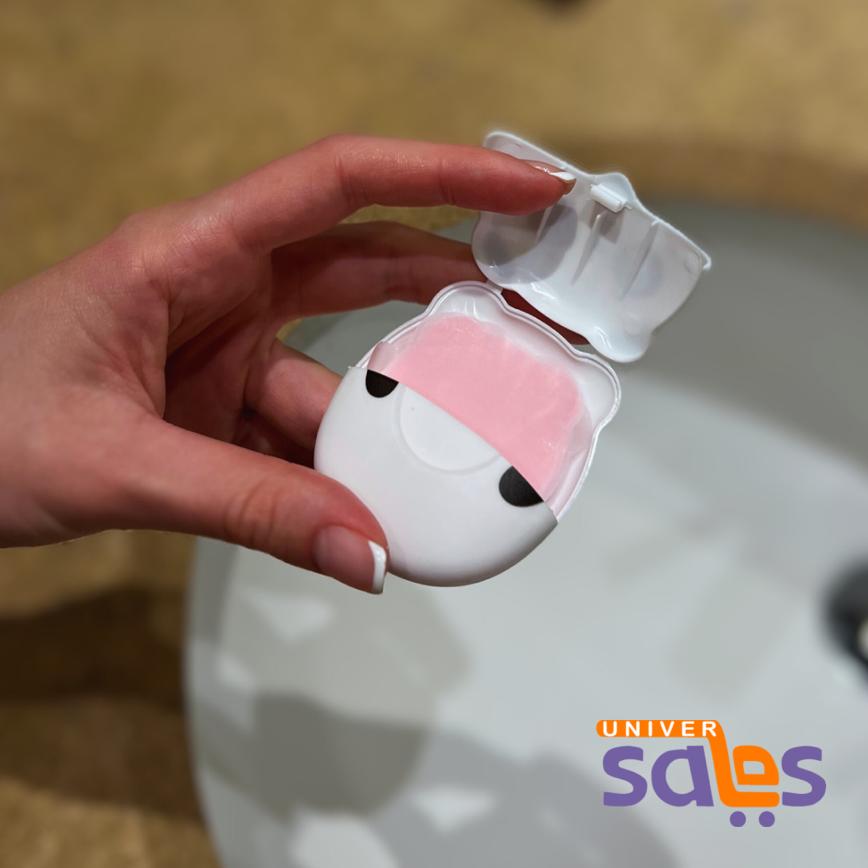 1. Con la mano seca, toma una pieza de jabon en lamina y ponla en la palma de tu mano
