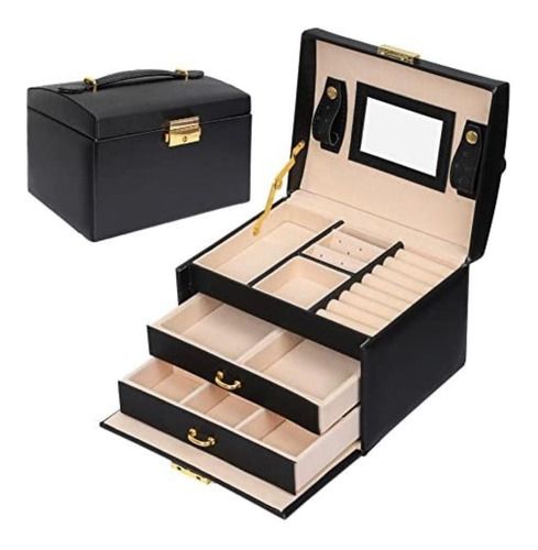 Joyero en cuero ecológico de tres niveles Perfecto para almacenar todo tipo de joyas o artículos pequeños personales, etc.