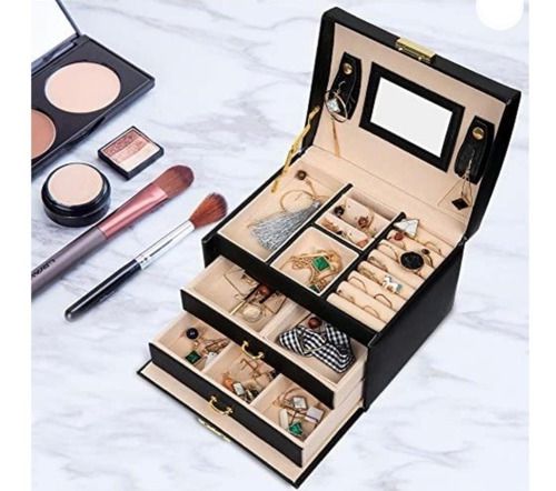 Joyero en cuero ecológico de tres niveles Perfecto para almacenar todo tipo de joyas o artículos pequeños personales, etc.