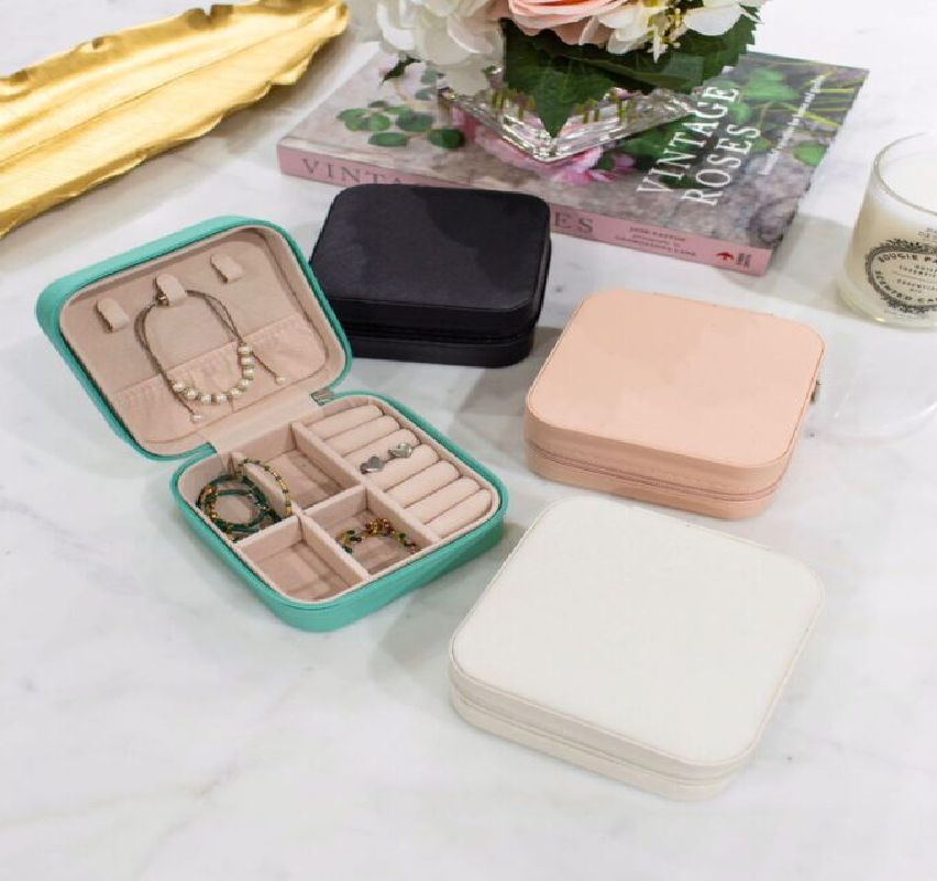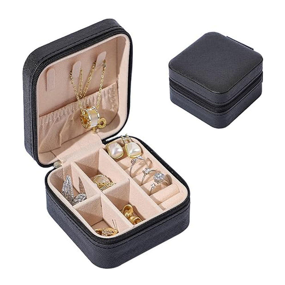 La parte inferior tiene dos placas de división movibles y soporte de ranuras de anillos. ideal para llevar joyas pequeñas
