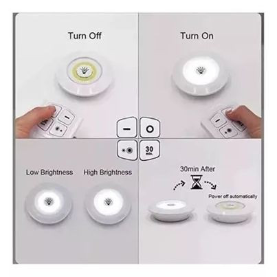Luz LED regulable para debajo del armario, con mando a distancia, funciona con pilas, luces LED para armarios, iluminación de baño, 3 luces COB más un mando a distancia