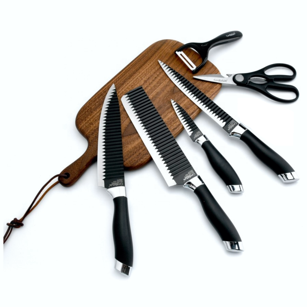 4) Juego de cuchillos extremadamente afilados: la tecnología de pulido de última generación hace que los cuchillos estén extremadamente afilados.