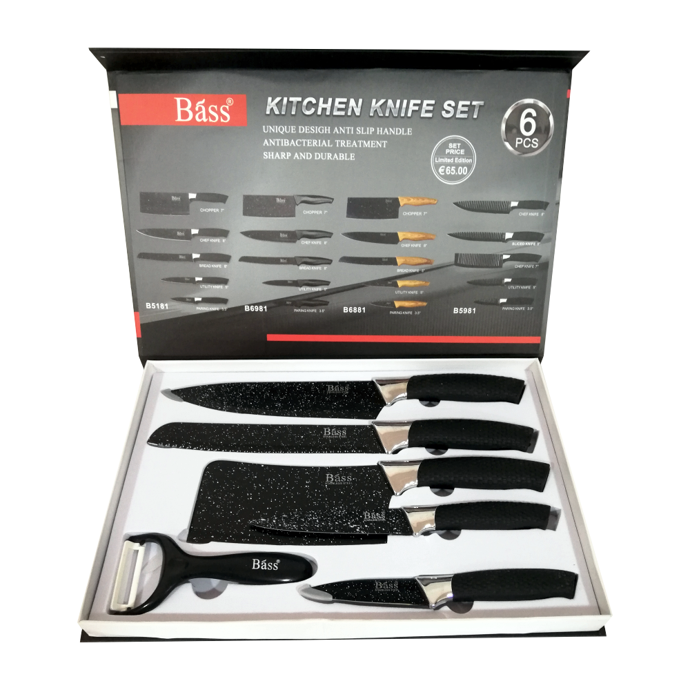 Set de 6PCS de cuchillos de cocina en acero inoxidable bañados en cerámica asa antiadherente con caja de regalo