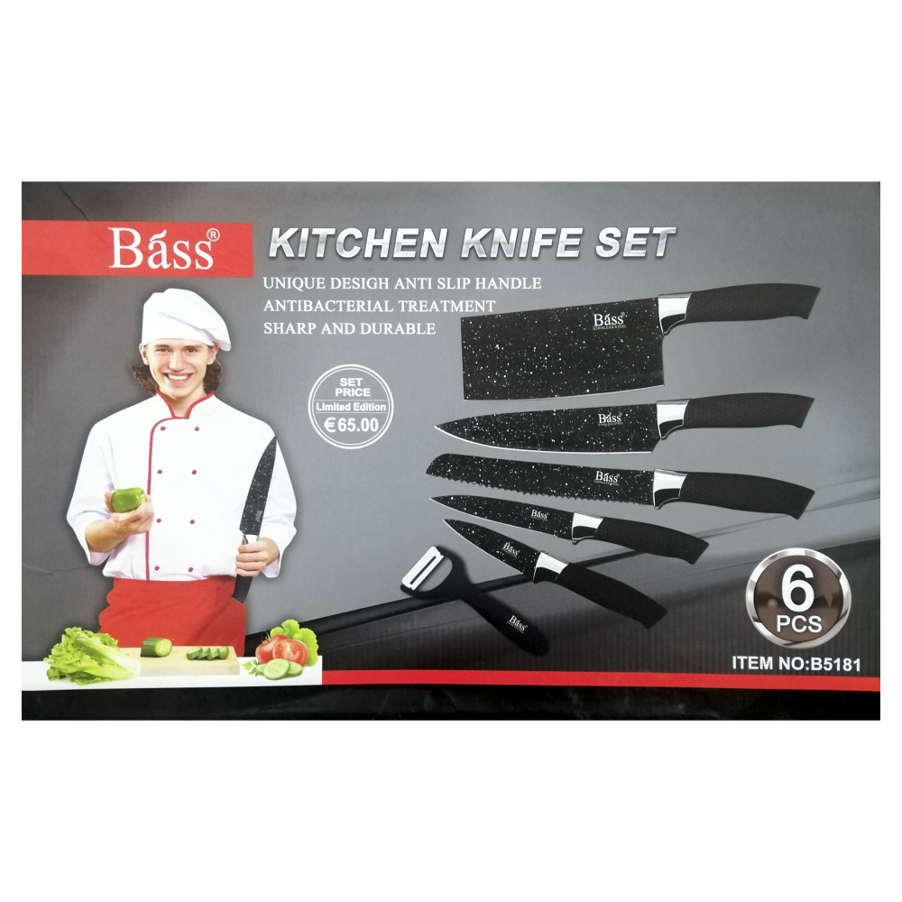 Hermoso set de cuchillos con hermosos diseños ideales para preparar tus comidas. Cuenta con Mango Antideslizante, Tiene una asa cómoda y con agarre para garantizar el uso seguro del corte con los cuchillos Diseño suizo Antibacterial