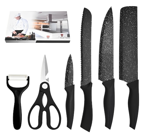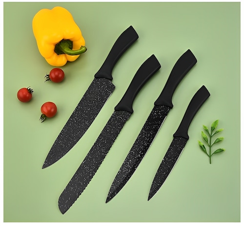 Este set de cuchillos profesionales de alta calidad está hecho de acero inoxidable negro y cuenta con un filo duradero que garantiza un corte preciso y suave. Los mangos ergonómicos están diseñados para proporcionar una mayor comodidad y control durante el corte, lo que los hace ideales tanto para chefs profesionales como para entusiastas de la cocina gourmet. Este juego de cuchillos incluye 6 piezas con diferentes tamaños y formas para adaptarse a cualquier necesidad de corte en la cocina. Además, su diseño elegante y su durabilidad garantizan un uso prolongado en la cocina. No te pierdas la oportunidad de tener este juego de cuchillos como parte de tus accesorios de cocina y disfruta de su precisión y resistencia en cada corte.