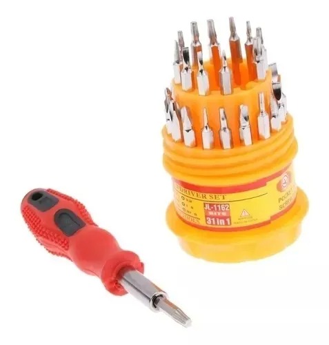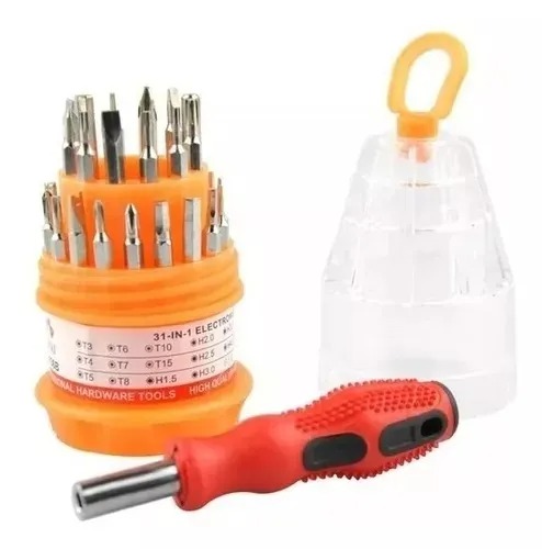 Kit Set Juego de Destornilladores de Precisión 31 en 1 tipo pirámide, este set incluye 30 puntas de destornilladores intercambiables y un soporte universal (Destornillador) con base imantada que sostiene perfectamente cada herramienta.