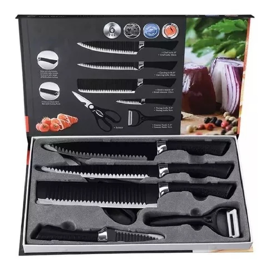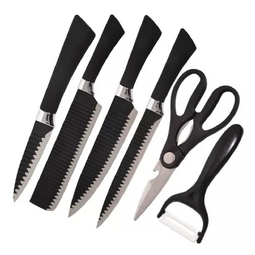 Juego Kit Set Cuchillos Todo En Uno 6 Piezas Profesionales Color Negro