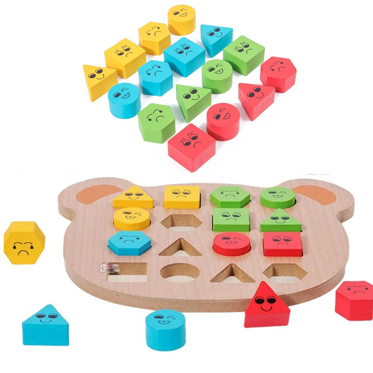 Juego feliz con expresiones de madera Toy: El juguete de bloques es adecuado para niños de 3 años y es un gran juego interactivo. Los niños toman una tarjeta y construyen los bloques de acuerdo con la referencia. El que termine en el menor tiempo gana.
