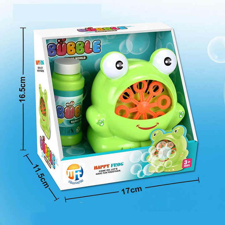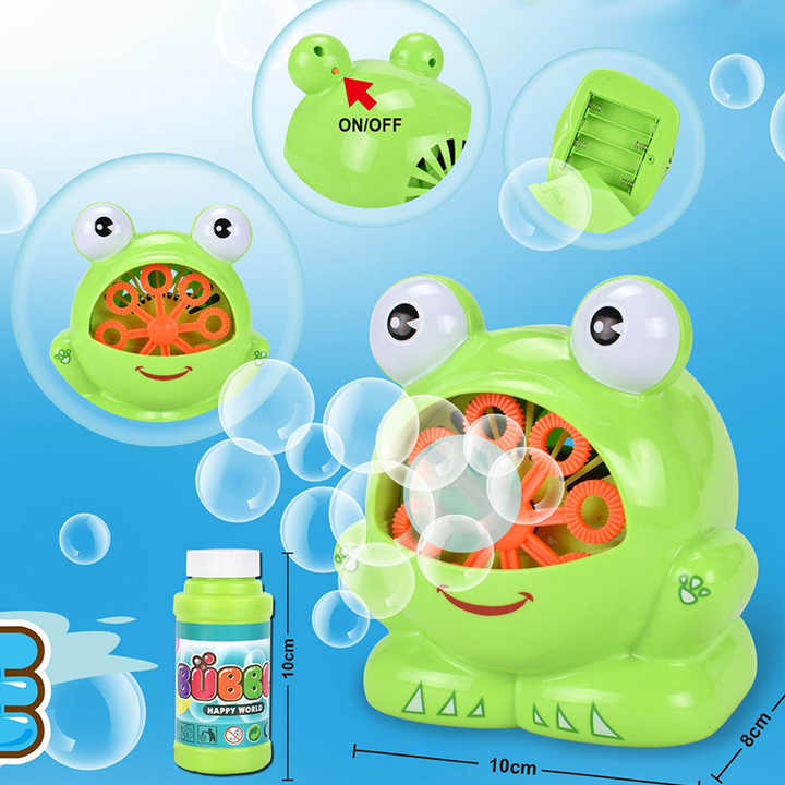Juguete eléctrico de pilas, las tradicionales burbujas le encantan a todos los niños, ahora sera mas divertido con el burbujero ranita lanzando cientos de burbujas sin parar. Incluye liquido y al terminarse puede ser reemplazado por jabón.