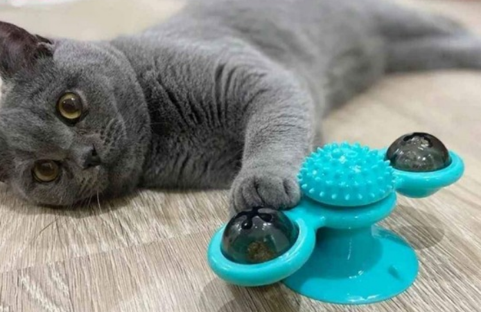 Hay un dispositivo de fricción para el cabello y la cara en el medio Ventosa fuerte en la parte inferior: La ventosa fuerte se usa en la parte inferior del divertido juguete para gatos, y el pegamento inferior finalmente se sintetiza mediante 8 procesos, que se pueden aspirar en el piso, puertas y ventanas, y debajo la mesa.