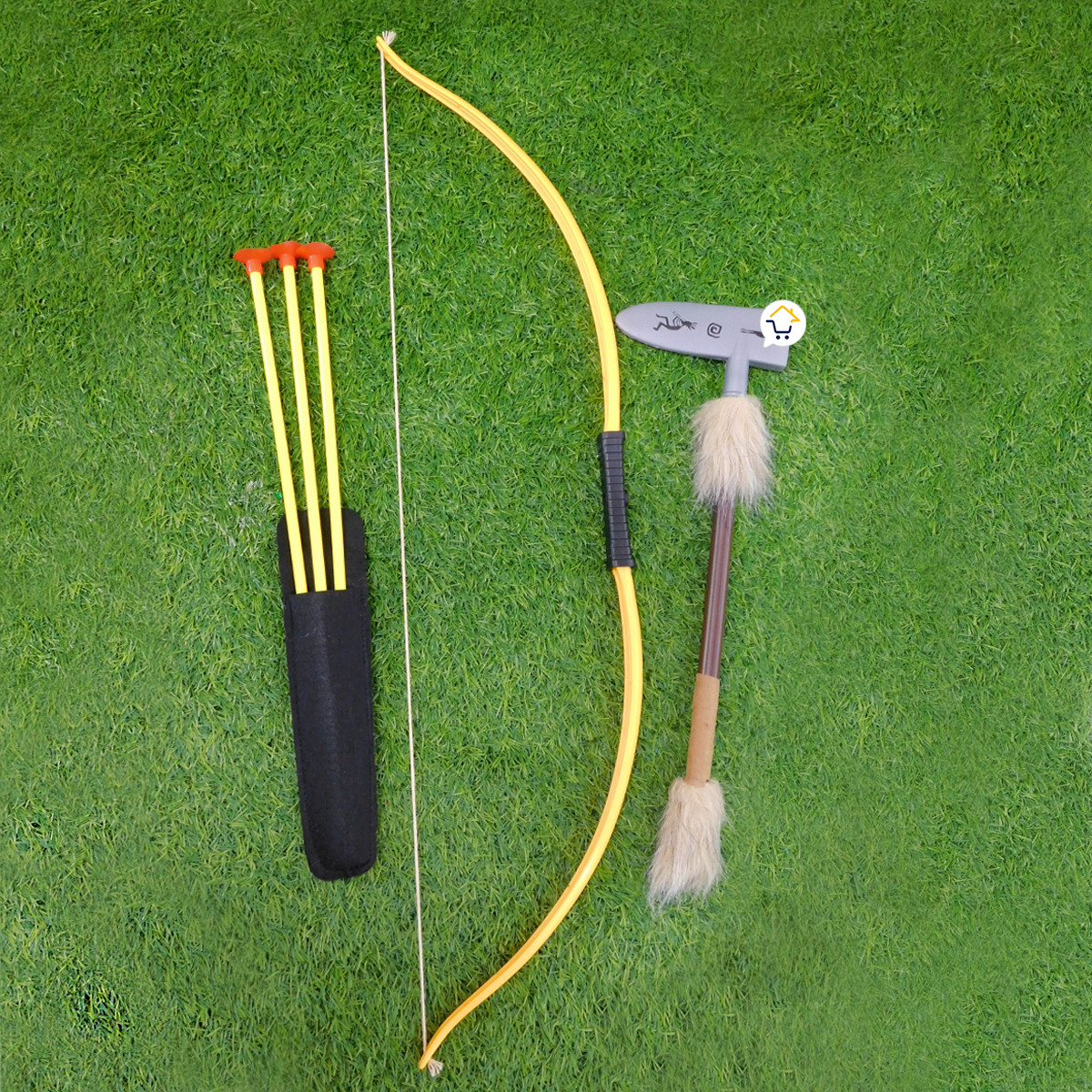- Tamaño producto: Carcaj: 24 cm x 5 cm x 1 cm /Arco: 70.5 cm x 15.5 cm x 2 cm. /Hacha: 40 cm x 12 cm /Flechas: 41.5 cm