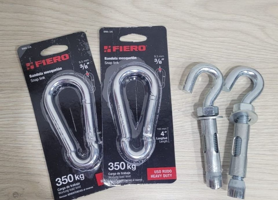 Este tipo de anclaje es el más seguro, ideal para instalaciones de alta resistencia en ladrillo o concreto, perfecto para la instalación de hamacas, chinchorros, toldillos, colgadores de ropa y otros elementos suspendidos en alturas; ya sea en la casa, finca, bodega, oficina, etc