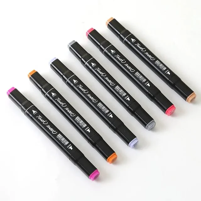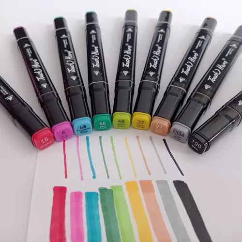 Kit De Marcadores De 168 Pcs Rotuladores Doble Punta’ ofrece una experiencia de pintura suave gracias a su punta importada. Sus colores brillantes pueden presentar una ligera diferencia de color. Estos rotuladores utilizan un pigmento aceitoso y un disolvente de alcohol para proporcionar una aplicación de color vibrante y duradera.