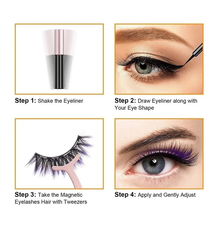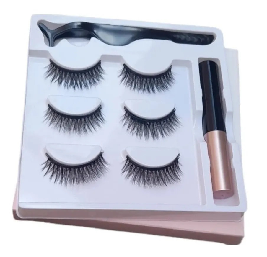 Kit de pestañas Magneticas x3 @@Faciles de usar, practicas, comodas y no maltratan @Las pestañas poseen 5 imanes y el delineador contiene microparticulas de imanes, los cuales hacen que las pestañas no se caigan, resisten todo un dia. Además son resistentes al agua. @@las pestañas son reutilizables de 30-40 posturas cada una dependiendo del cuidado @@@Por tu compra recibe: @@- 3 Pares de pestañas 5 imanes @- Delineador magnético 5 ml @- Pinza @@Modo de uso: @@ 1 – Realizar delineado, con el delineador magnético @2- Dejar secar unos 30-60 segundos @3- Aplicar la pestaña sobre el delineado