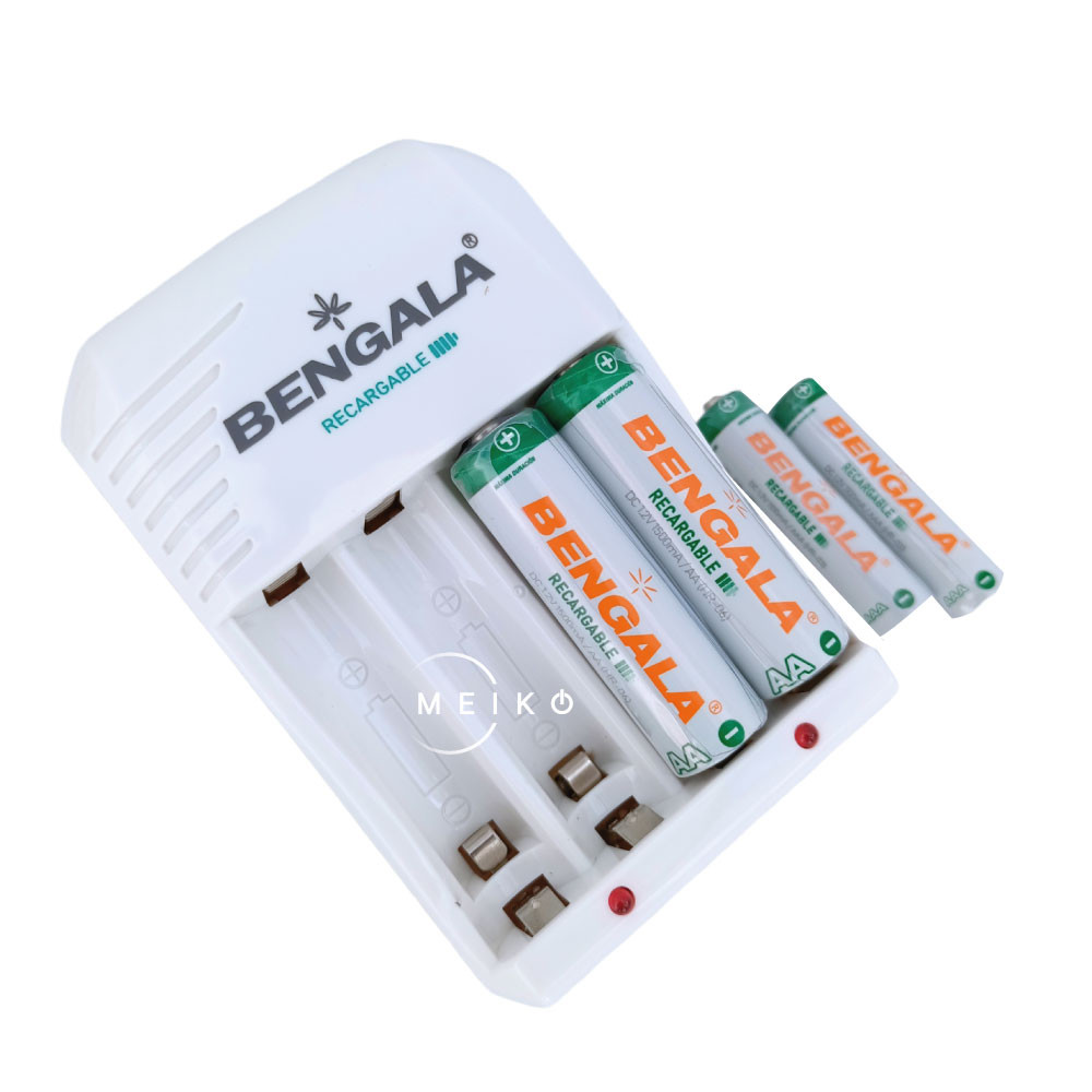 EL kit incluye cargador + 4 baterías que puedes elegir AAA, AA o mixtas (2 y 2 de cada una).