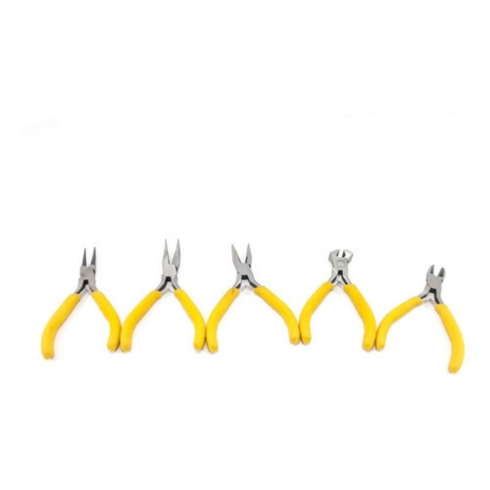 Pinzas que contiene: -Corta frio. -Tenaza 5″ -Pinza punta 5″ -Alicate 5″ -Saca pines 5″