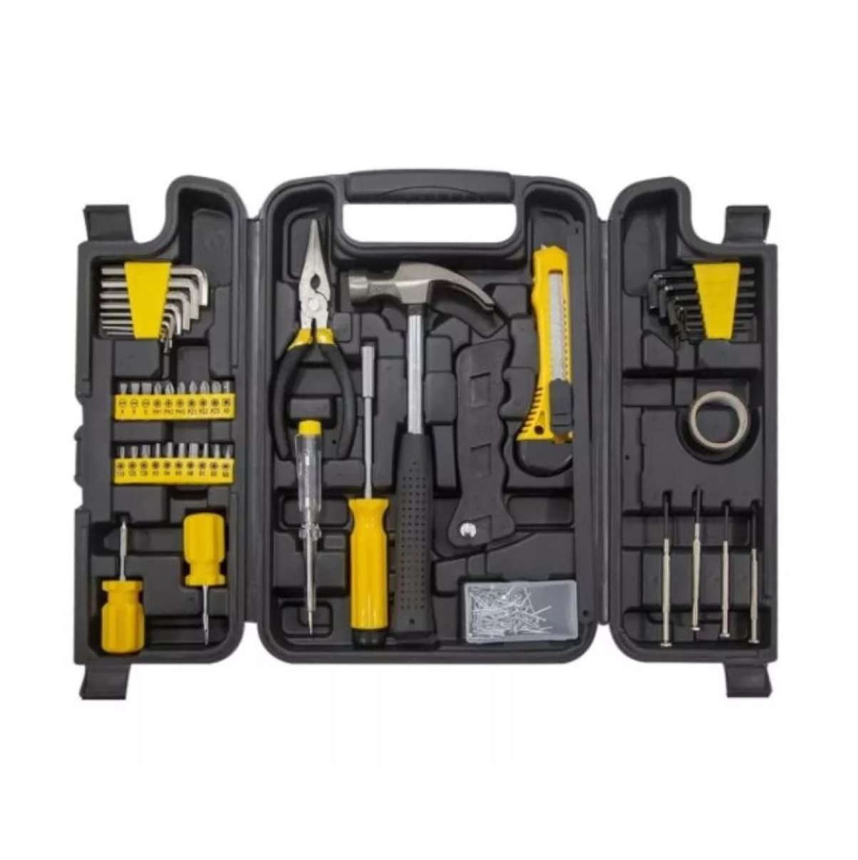 Además, viene con un estuche de plástico con un diseño resistente, ofreciendo protección a las herramientas y facilidad de transporte. Es un kit excelente y súper completo.