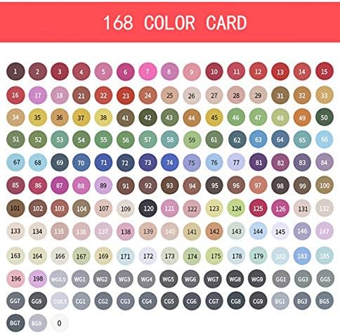 Art Suppliers 168 marcadores de alcohol de colores vibrantes con 4 bases: marcadores de arte permanentes de doble extremo de calidad profesional de artista. Incluye punta fina de 0.039 in y punta ancha de 0.236 in, todos los tonos de tono de color primario y secundario que los artistas necesitan para colorear adultos, dibujar, escribir, bocetar, ilustrar, sombrear, diseñar, renderizar, manga, anime, libros de colorear para adultos, caligrafía, tarjetas, estampado y mucho más. Perfecto para usar en papel, cerámica, vidrio, madera, tela y mucho más.