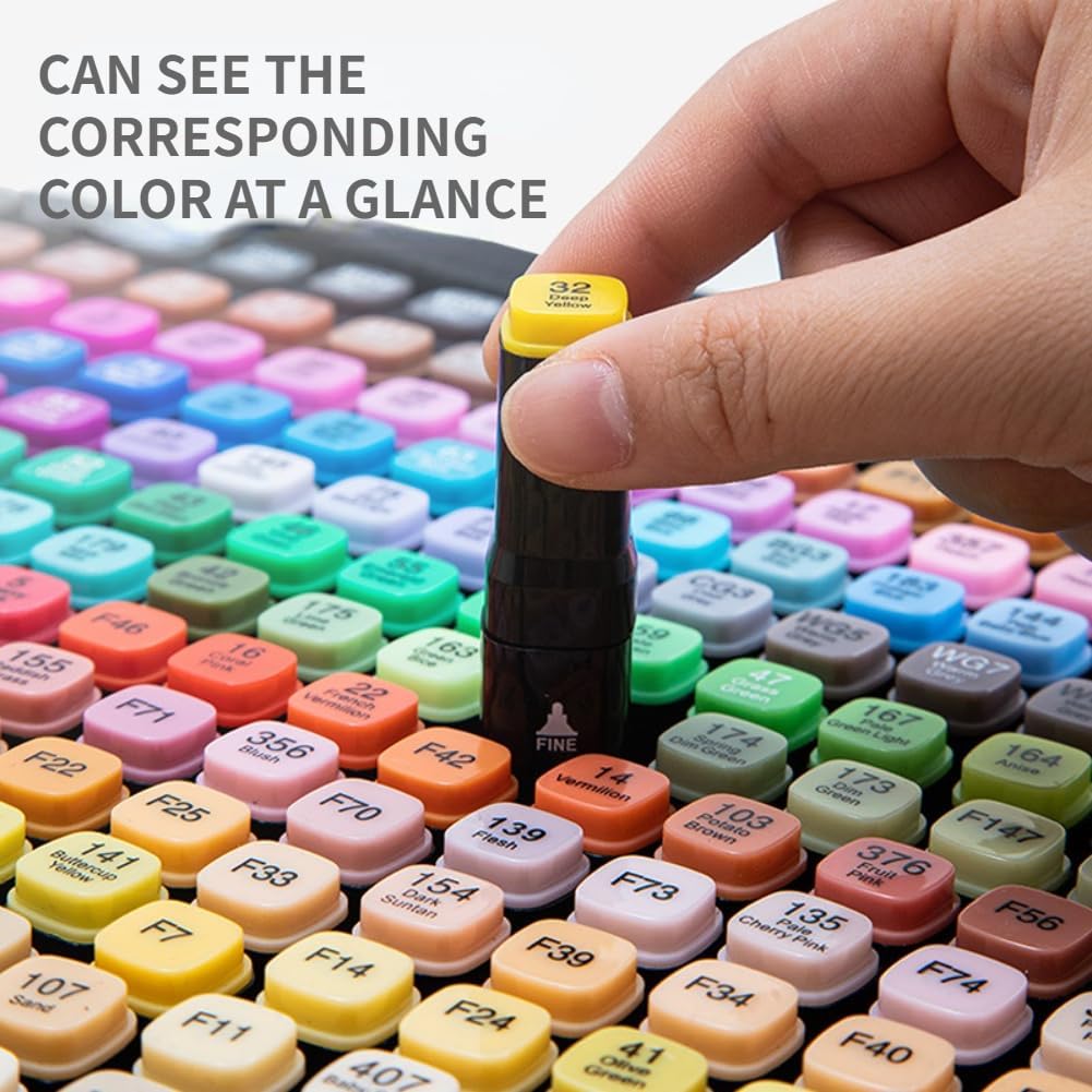 Secado rápido y de alta calidad, encuentra colores rápidos: los marcadores artísticos se mezclan y se colocan bien sin dejar rayas y se secan rápidamente. Nuestra tinta permanente de gran calidad proporciona una rica saturación de color y los colores que se deben colocar limpios, suaves y uniformemente. Combinación de color perfecta cada vez que las utilices porque las puntas comparten un solo depósito de tinta. Las tapas codificadas por colores evitan que las puntas se sequen y te ayudan a encontrar cualquier marcador en un instante. Estos marcadores de pintura están diseñados para durar y no se desvanecen fácilmente.