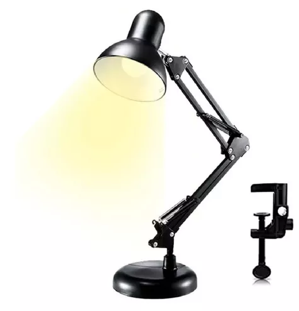 Con una estructura de metal resistente y una pantalla de aluminio, esta lámpara no solo es duradera sino también un complemento estético para cualquier escritorio o mesa de trabajo. Su diseño articulado te permite ajustar la dirección de la luz con precisión, mientras que su base estable asegura un soporte firme en cualquier superficie.