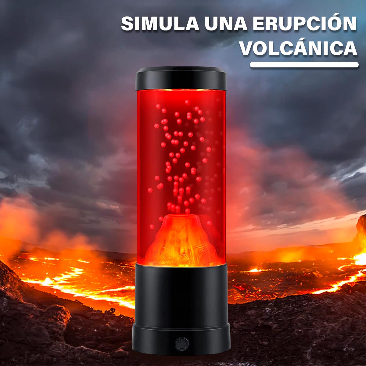 Lámpara con temática de volcán, tiene un efecto que imita la lava en erupción con bolitas rojas. Su diseño elegante y compacto es perfecto para agregar un toque de estilo y relajación a cualquier habitación. Ideal para crear un ambiente acogedor y visualmente atractivo.