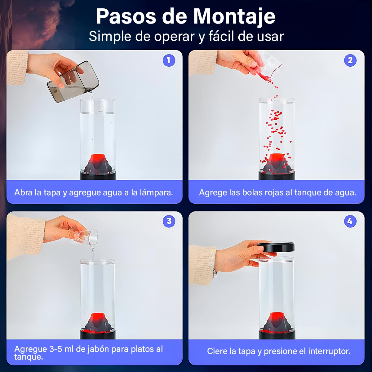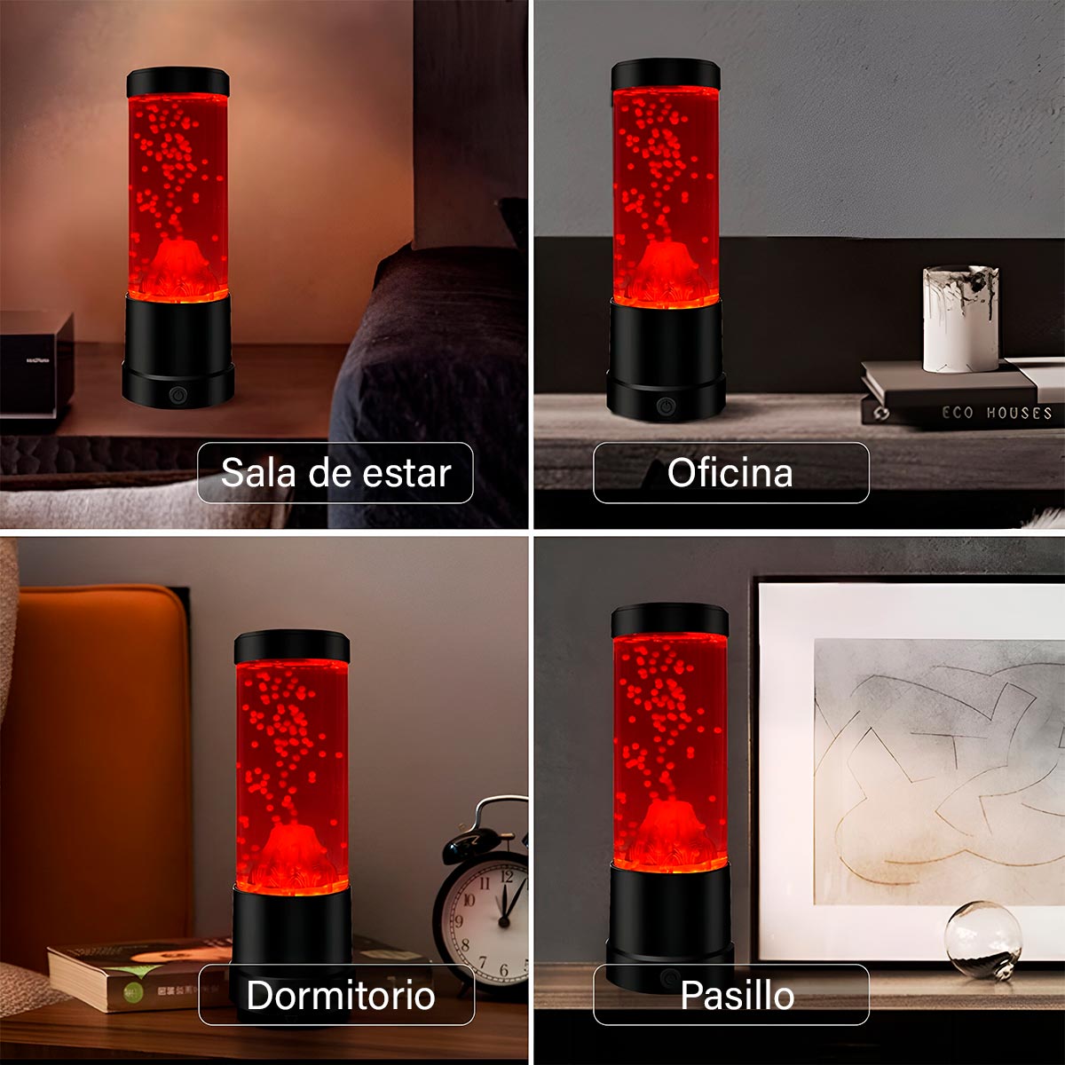 - Crea un efecto hipnotizante con bolitas que simulan lava en erupción, ideal para relajarse y decorar.