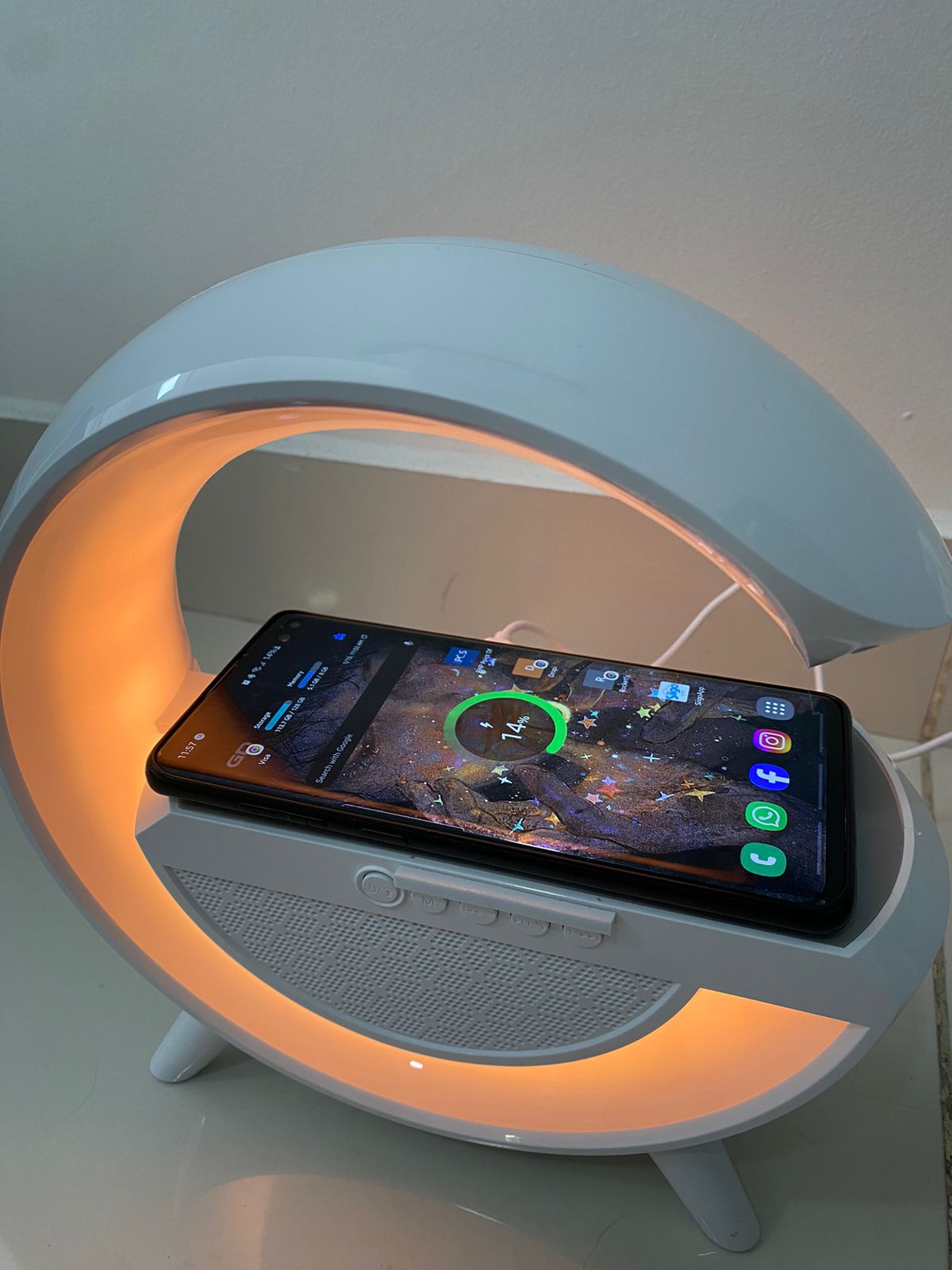 Lampara 4 en 1 Luz LED cargador Inalámbrico parlante Radio FM