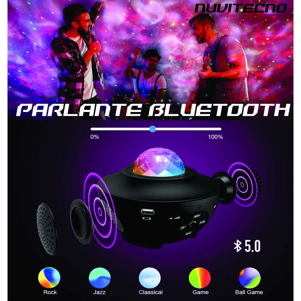 PROYECTOR PARLANTE BLUETOOTH STARRY LUCES LED DE AMBIENTE NOCTURNO @@Especificaciones : @-Proyector de luz estelar de 10 colores para dormitorio con brillo ajustable. @- Proyecta inmediatamente un campo de estrellas azules, junto con una nebulosa y ola del océano. @-Tiene 3 niveles de brillo. Perfecto para crear una relajante decoración de planetario en tu hogar.