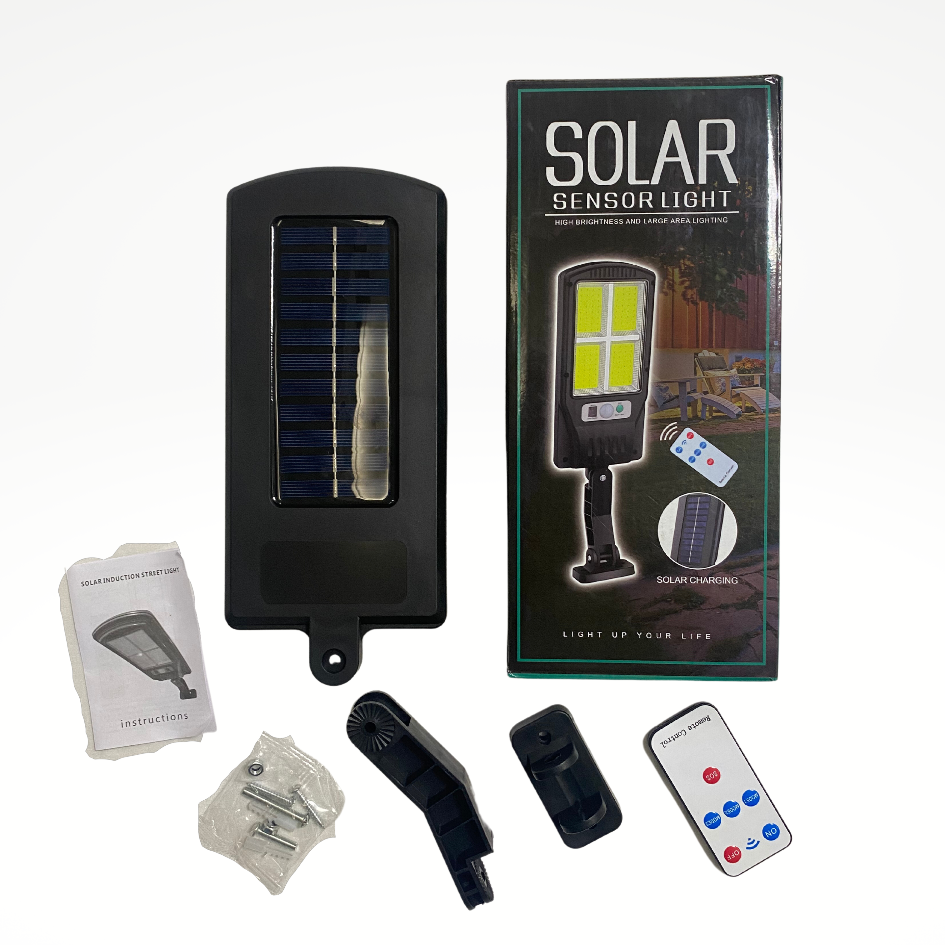 LÁMPARA SOLAR CON SENSOR Y CONTROL. TIENE 3 MODOS DE USO. EXCELENTE CALIDAD Y FUNCIONAMIENTO. CAJA GRANDE. DESPACHOS EL MISMO DIA HASTA LAS 3:30 – 4 PM.