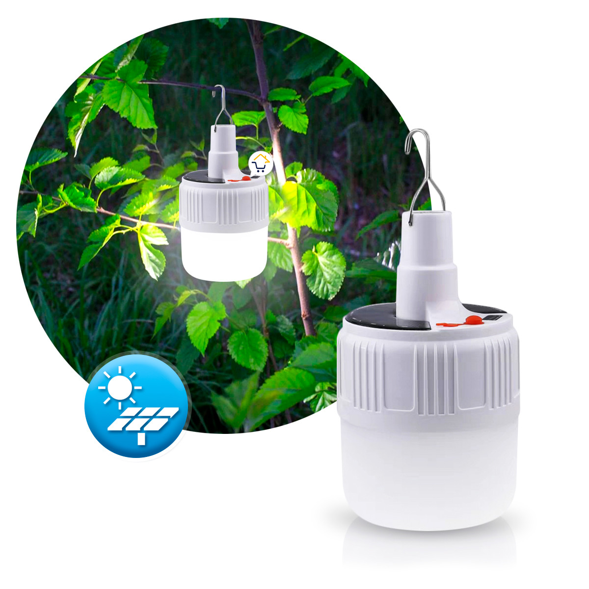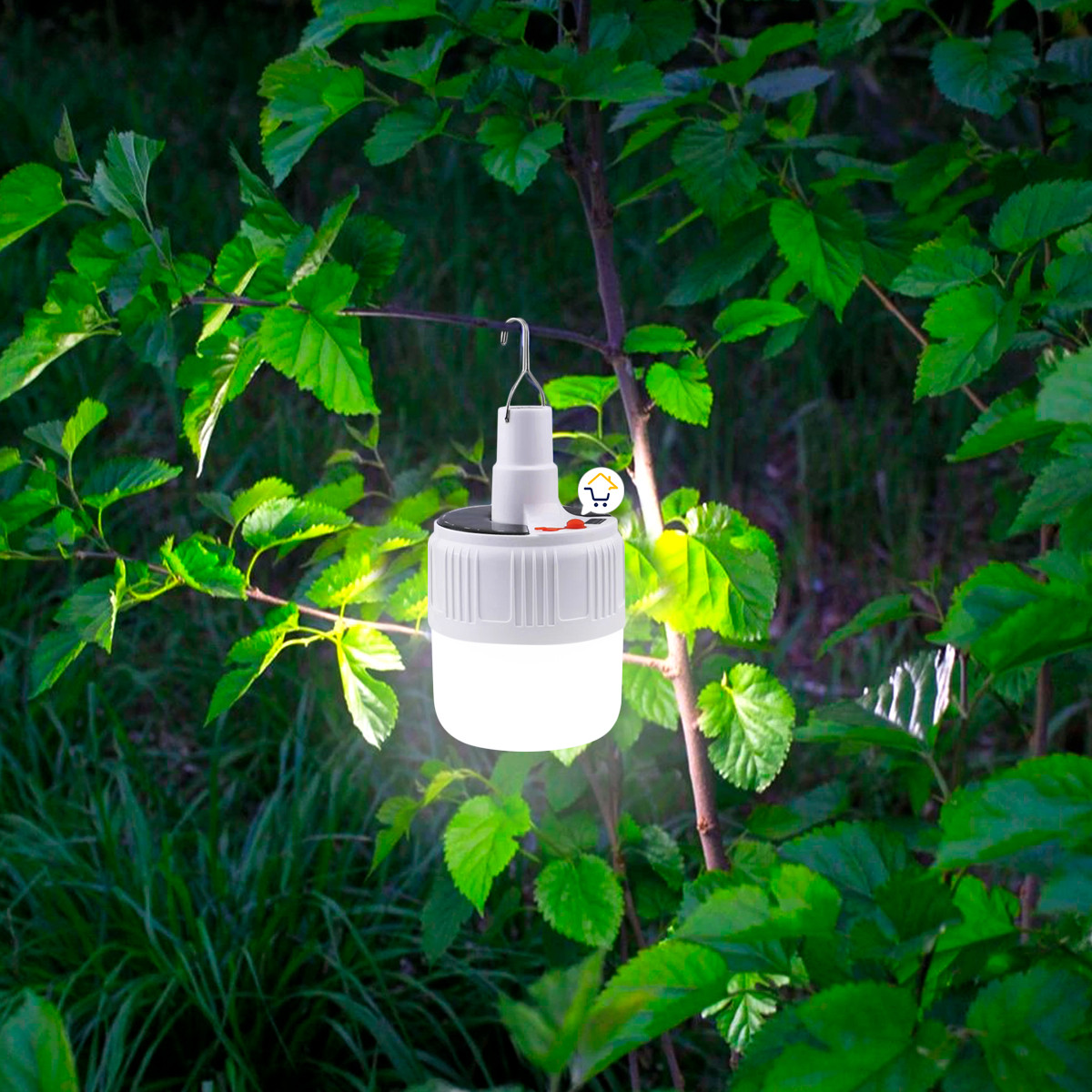 - Gracias a su gancho en acero puede colgarse y transportarse de fácil manera, ideal para colgar en ramas, techos, parte superior interna de la carpa o colocar sobre la mesa o el césped.