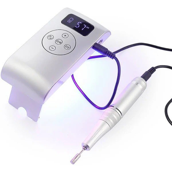 2 en 1 taladro de uñas Uv y secador de uñas y banco del poder, no solo una pulidora, sino también una MINI lámpara de uñas y una POWER BANK.USB puede cargar el teléfono.