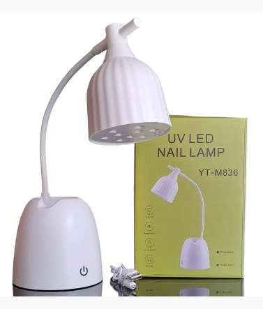 Diseñada para secar esmaltes de uñas de gel de manera rápida y eficiente. La lámpara tiene un diseño flexible tipo cuello de ganso, lo que permite ajustar la dirección de la luz. Ofrece protección ocular y de la piel, asegurando que no cause daño a los ojos ni oscurezca las manos durante su uso. Está disponible en dos tipos de alimentación: recargable y con enchufe.