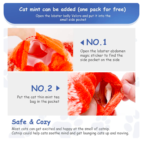 ¡Divertido juguete para gatos y perros! Se mueve como un camarón real. ¡Permanece inmóvil cuando las mascotas lo dejan en paz!