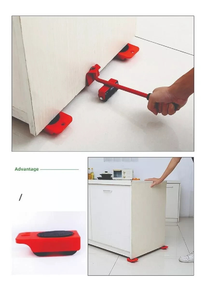 Para utilizar el kit de herramientas solo basta con posicionar los ejes con cada esquina del mueble a desplazar y listo, este será movilizado sin ningún problema.