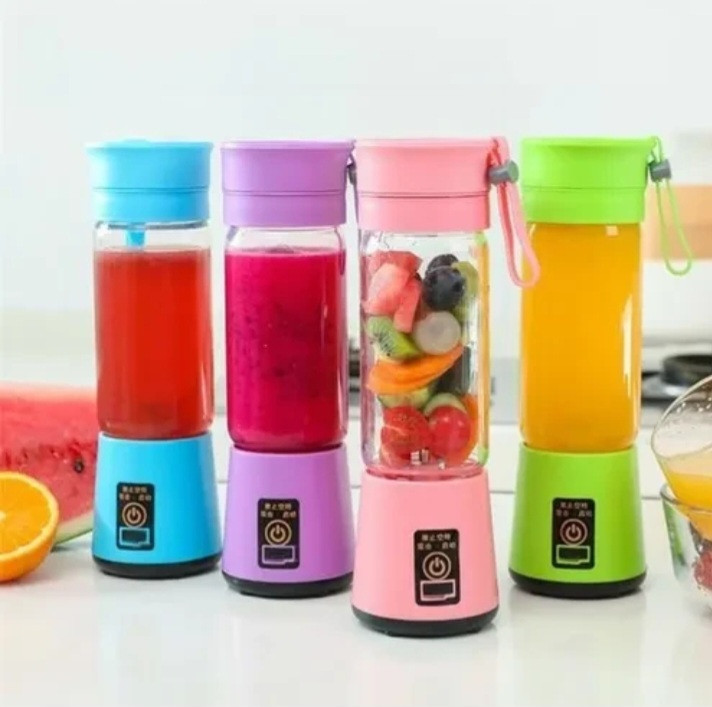 Vaso con licuadora integrada, ideal para realizar jugos o licuados en cualquier lugar. Puede beber directamente de la botella sin necesidad de colarlo a un vaso ya que viene con filtro colador para que no pase la pulpa o semilla.