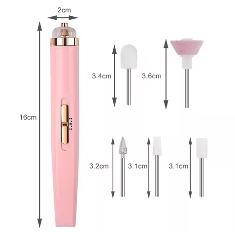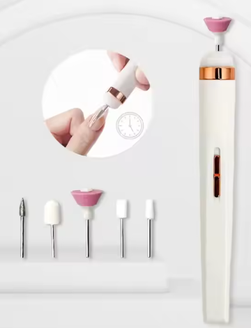 Nuestra lima eléctrica viene con 5 brocas de herramientas de uñas que se adaptan a tus necesidades específicas de cuidado de uñas. Ya sea que necesites quitar la piel muerta, dar forma a tus uñas o pulirlas a la perfección.